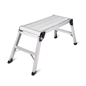 This folding ladders features an aluminum work platform step stool with a non-slip mat for added safety and stability. Designed to support up to 330 lbs, it offers a sturdy yet lightweight structure that folds easily for storage. Ideal for home maintenance, drywall work, car washing, and everyday household tasks, this portable platform provides secure footing and reliable performance.